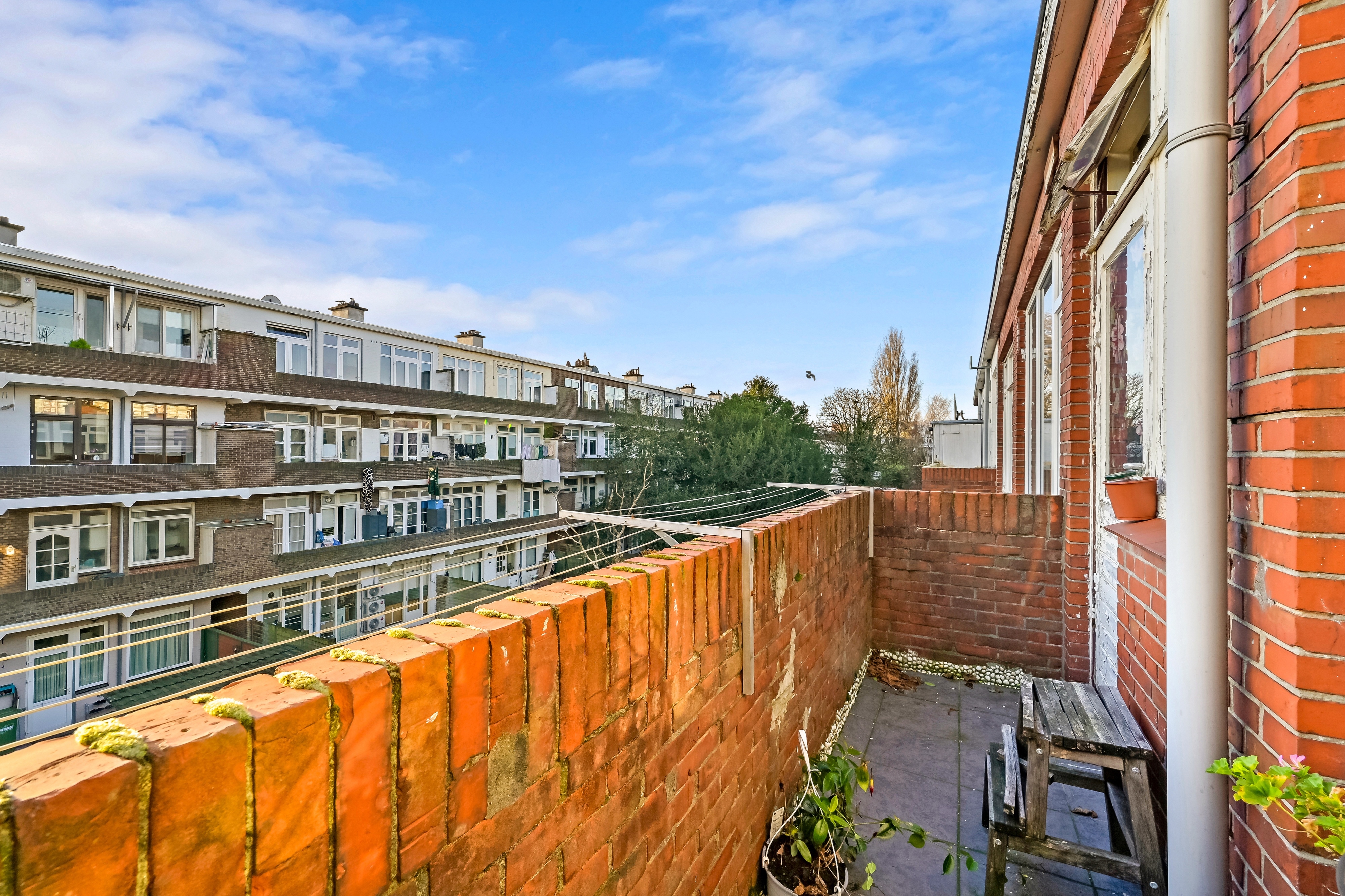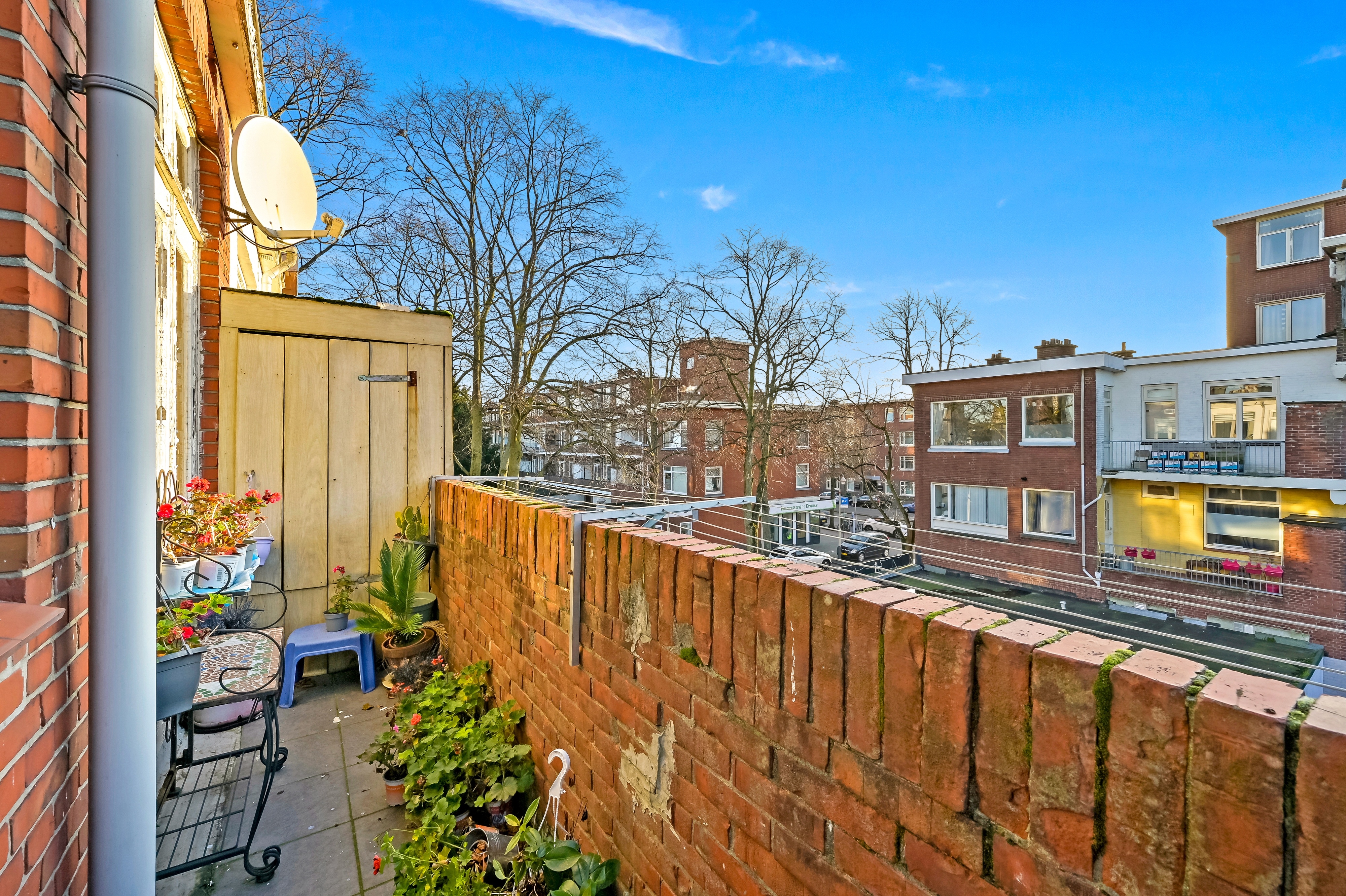Balkon (4.10 x 0.94) aan de achterzijde met kast gelegen op het zuidoosten.