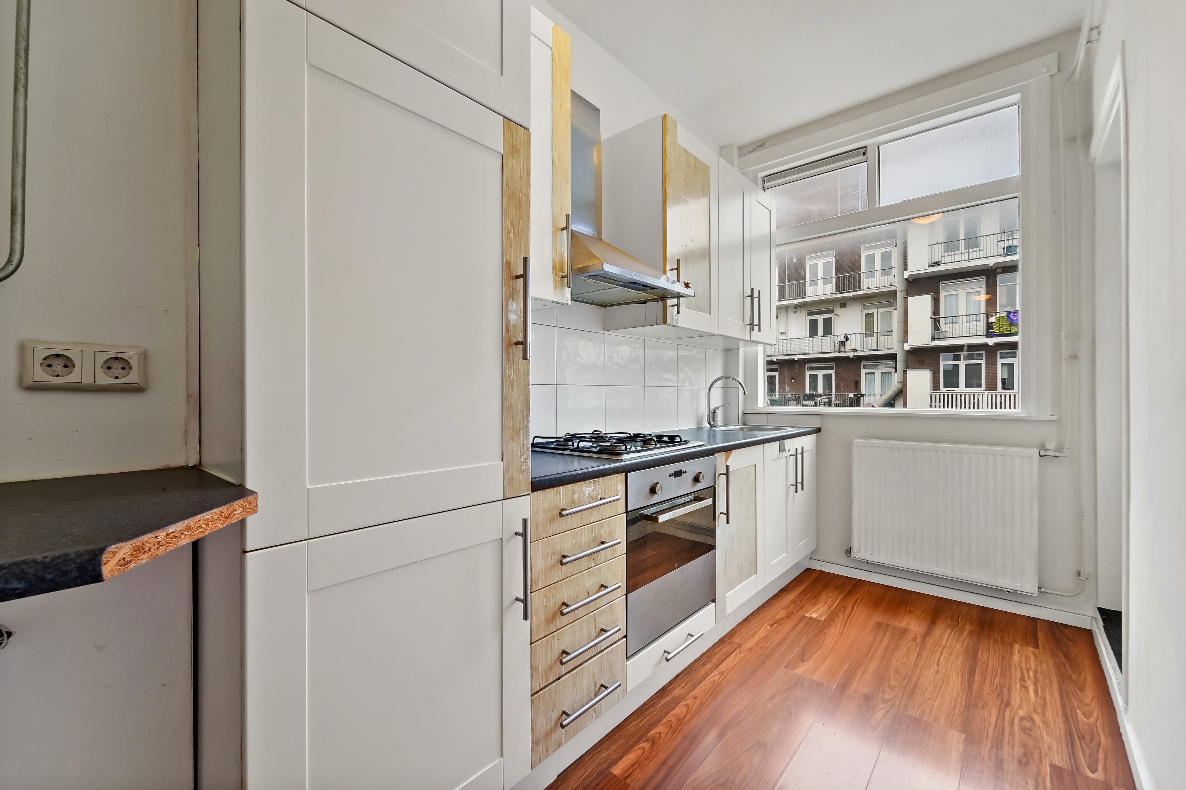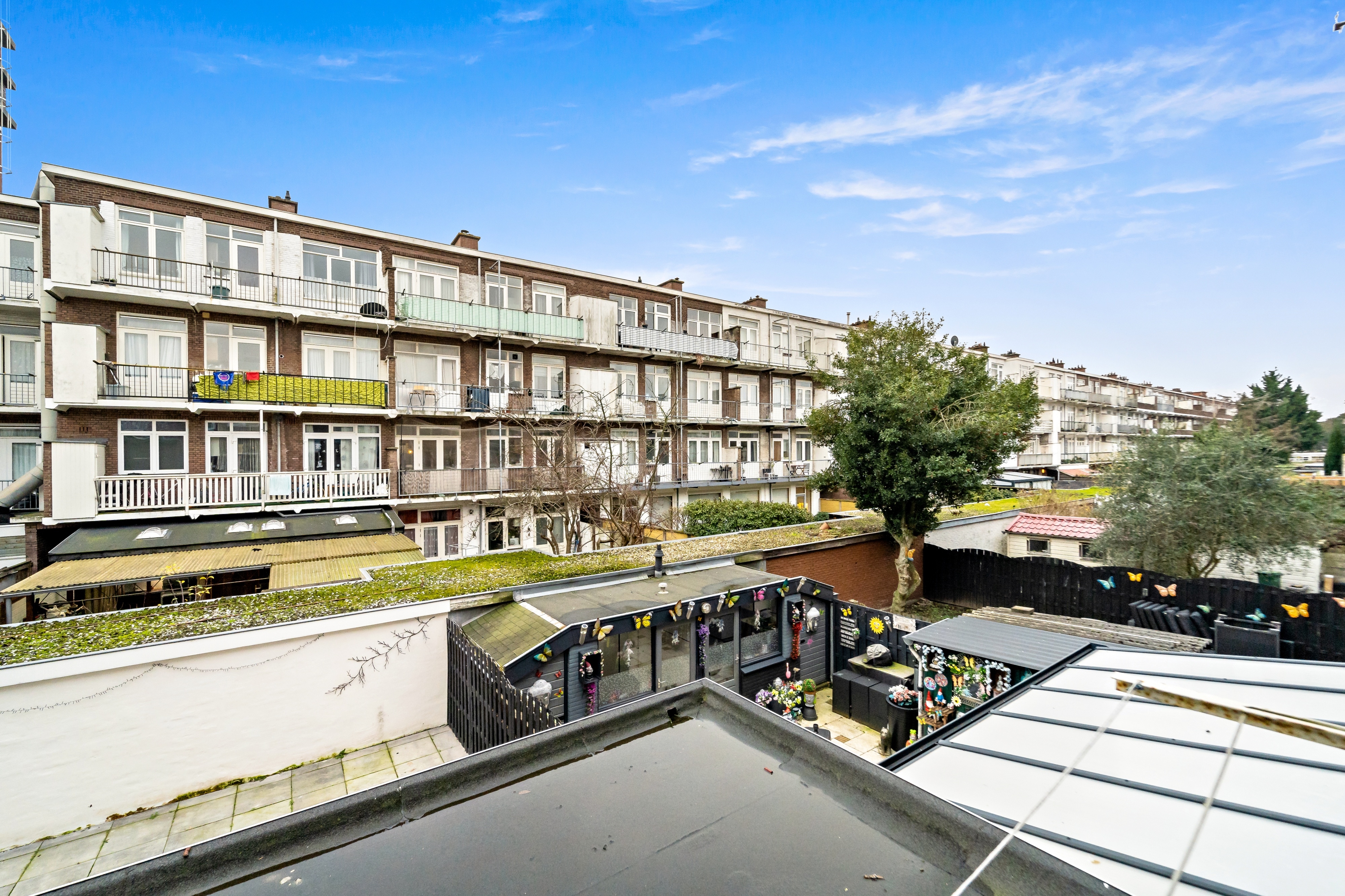 Balkon (2.19 x 1.09) aan de achterzijde met vaste kast op Zuid-Oosten.