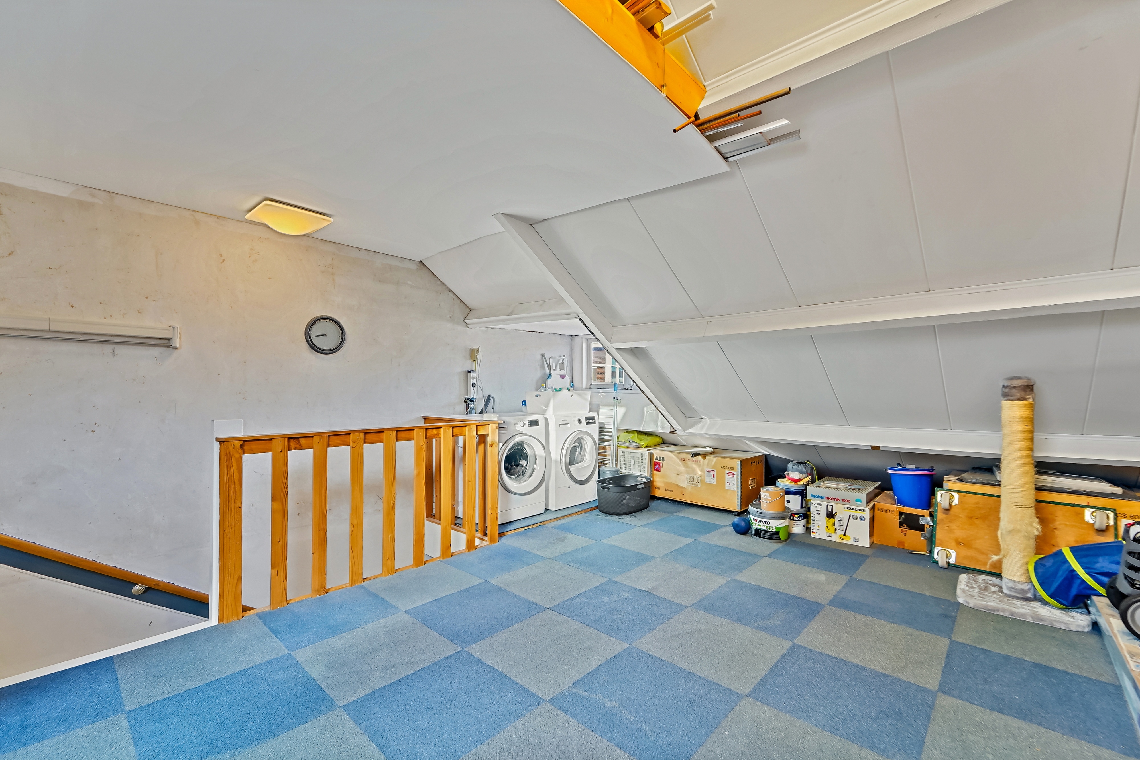 Grote zolderverdieping (4.60 x 4.50) over de gehele breedte van de woning met kastenwand, wasmachine- en droger aansluiting en opstelplaats CV-ketel;