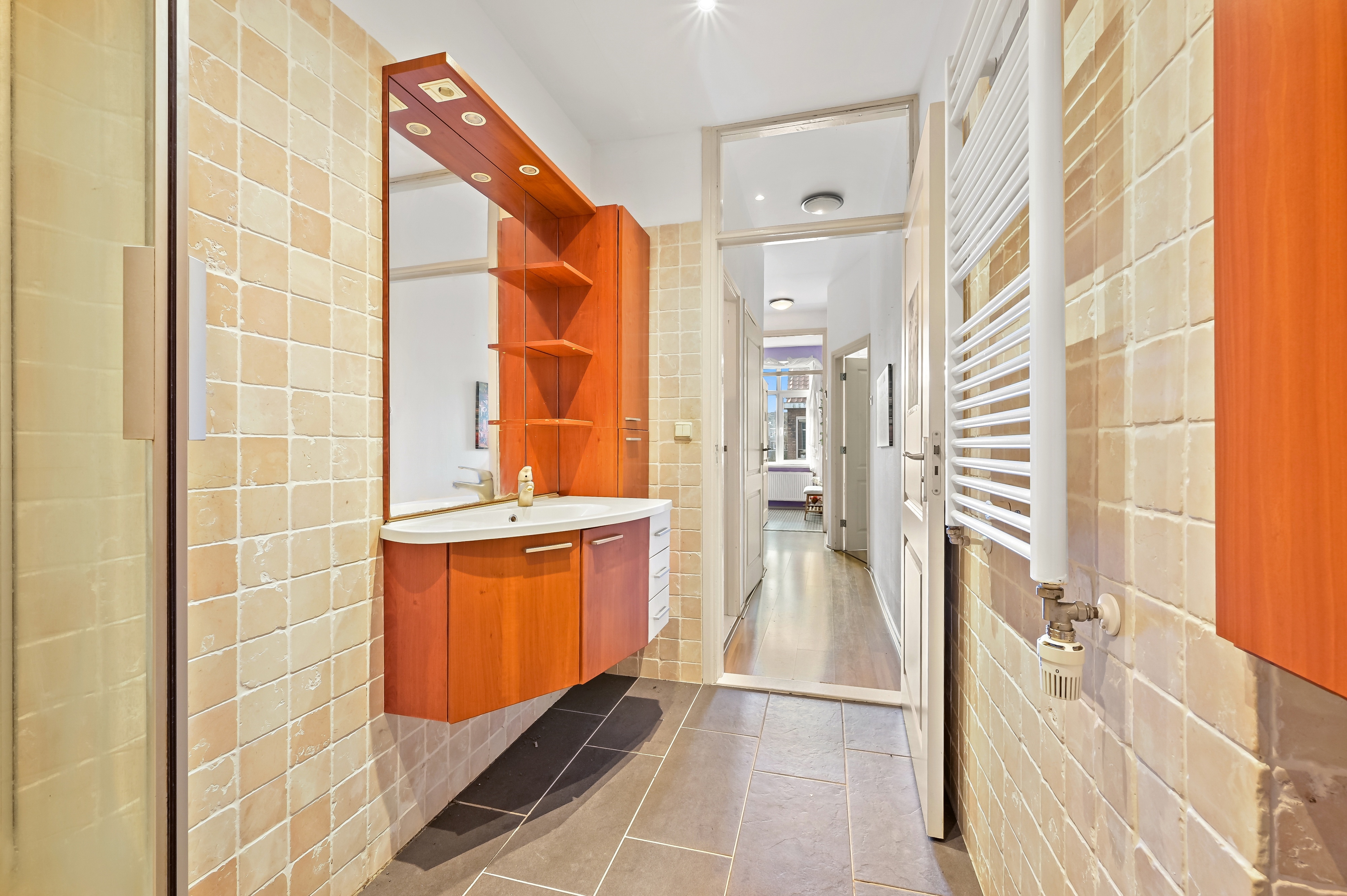 Gelegen in een rustige straat een goed onderhouden 3-kamer bovenwoning van 63m gesitueerd op de eerste verdieping. Dit appartement beschikt over een prettige en speelse indeling met veel lichtinval, een luxe open keuken, een moderne badkamer, een woon/eetkamer, 2 slaapkamers, centrale verwarming, kozijnen met dubbele beglazing en gelegen op eigen grond. Daarnaast kenmerkt deze woning zich door een karakteristieke vooroorlogse geveluitstraling en maakt het onderdeel uit van een actieve vereniging van eigenaren.