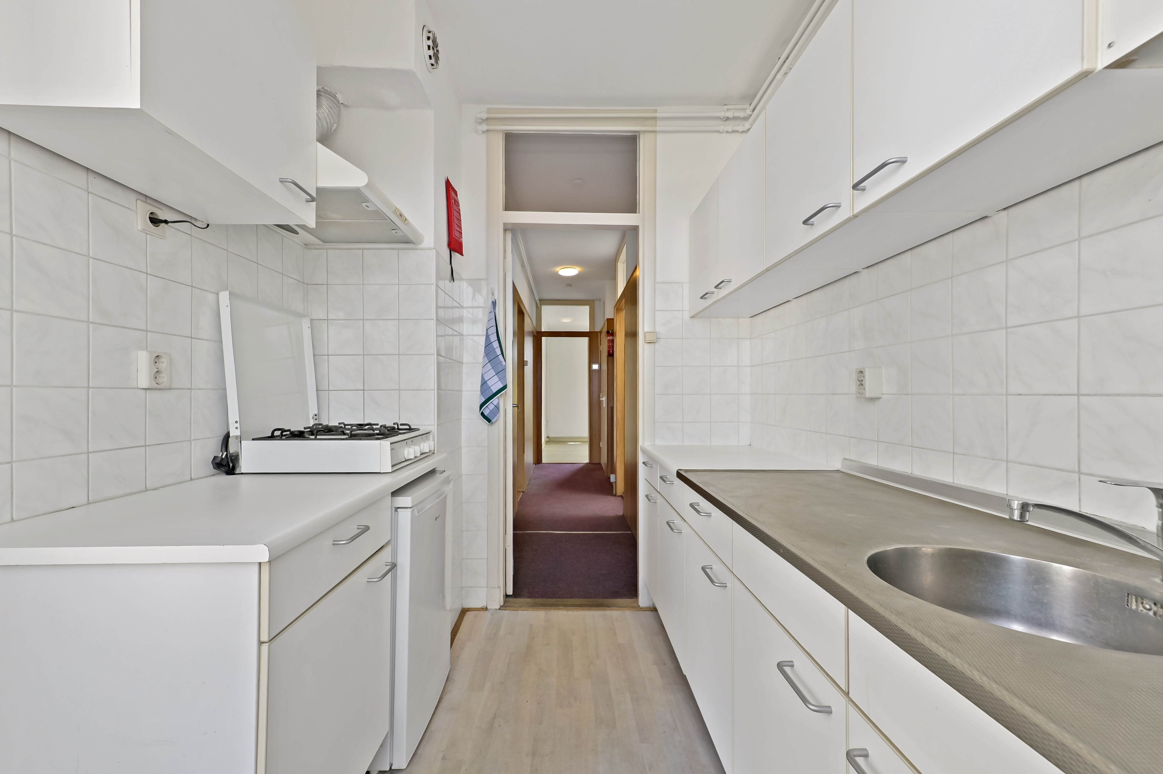 Entree woning middels open portiek met trap naar 1ste verdieping; voordeur met hal, meterkast en trap naar de bovenverdieping; 2e verdieping met overloop en toegang naar de volgende ruimtes; woon/eetkamer ensuite (10.87 x 3.29) met toegang tot balkon; slaapkamer I (3.72 x 3.57) aan de voorzijde met vaste kast; slaapkamer II (3.89 x 2.08) aan de achterzijde; tussengelegen badkamer (2.15 x 1.70) met douchecabine, wastafel en wasmachine aansluiting; keuken (2.90 x 2.12) aan de achterzijde, welke voorzien is van een 4-pits gaskookplaat, koelkast, opstelplaats CV Ketel en toegang tot het balkon (2.67 x 1.01); toilet;