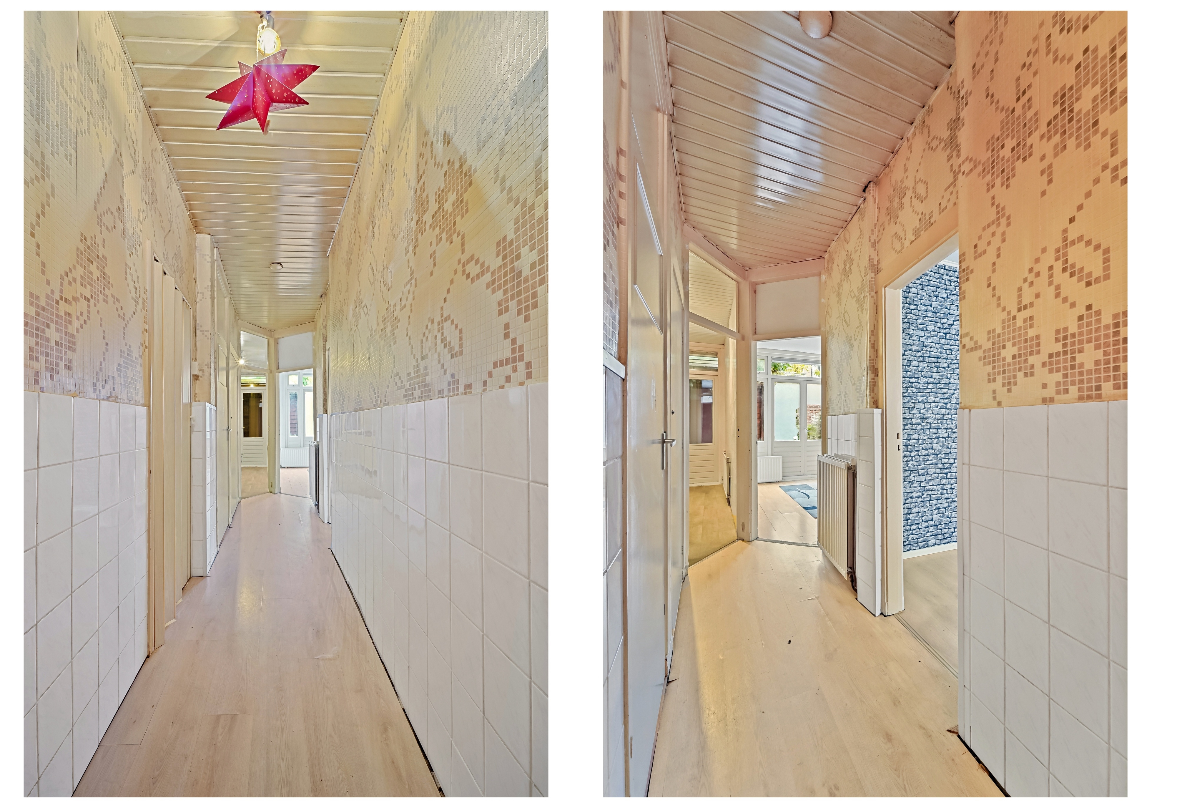 - Gehele woning voorzien van houten kozijnen met dubbel glas